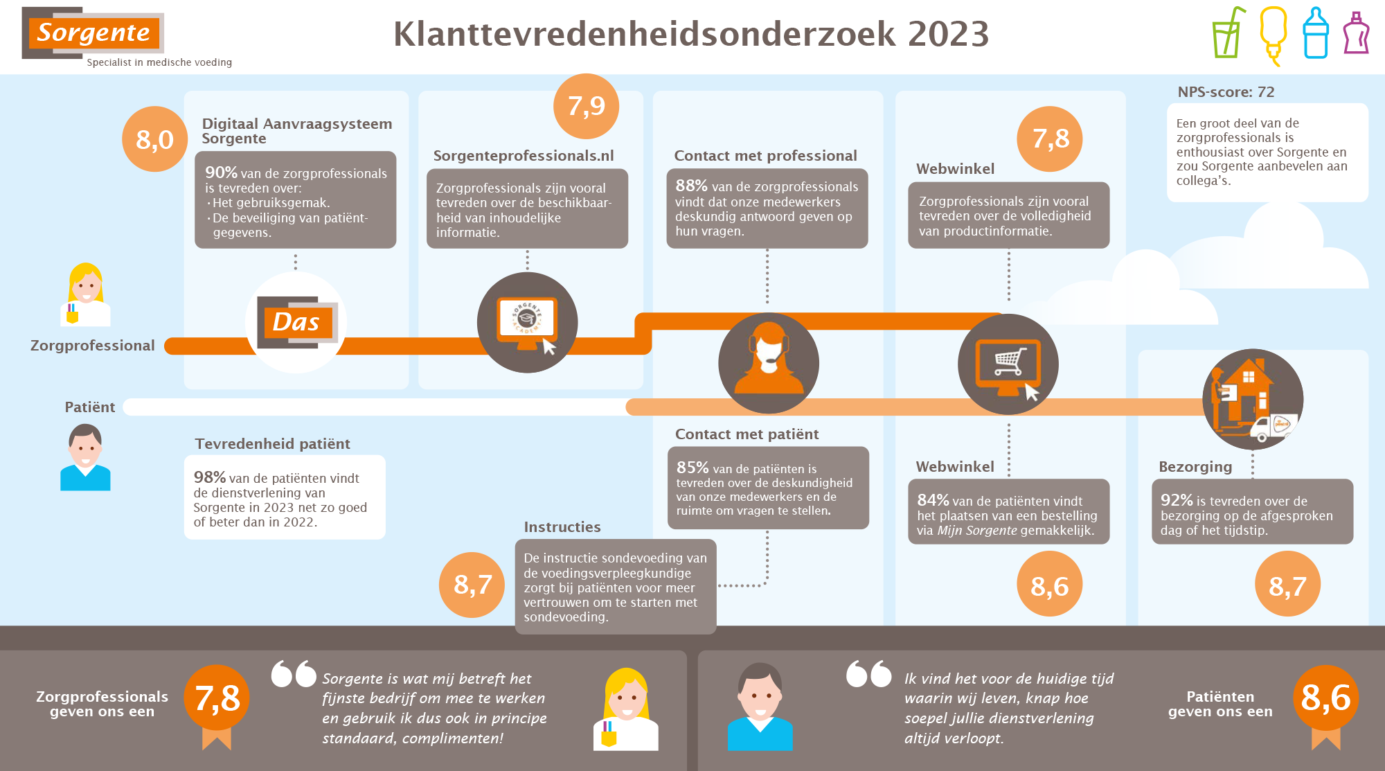 Naast het KTO onder zorgprofessionals hebben we ook aan onze klanten – jouw patiënten – gevraagd wat ze vinden van onze dienstverlening. In onderstaande factsheet zijn de resultaten van beide onderzoeken samengevat.