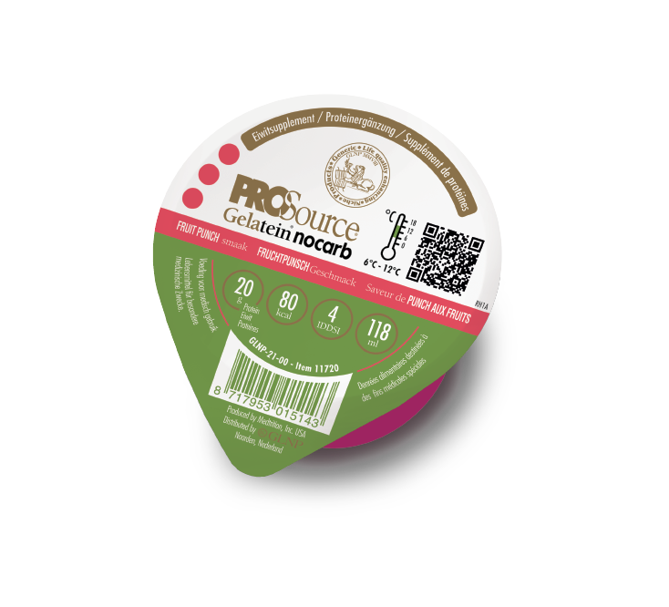 GLNP introduceert een nieuwe voeding: PROSource Gelatein. Dit is een aanvullende dieetvoeding in puddingvorm bij slikproblemen en eiwitondervoeding. De PROSource Gelatein komt in twee varianten: PROSource Gelatein Plus en PROSource Gelatein Nocarb. De voeding is geschikt vanaf de leeftijd van 3 jaar.